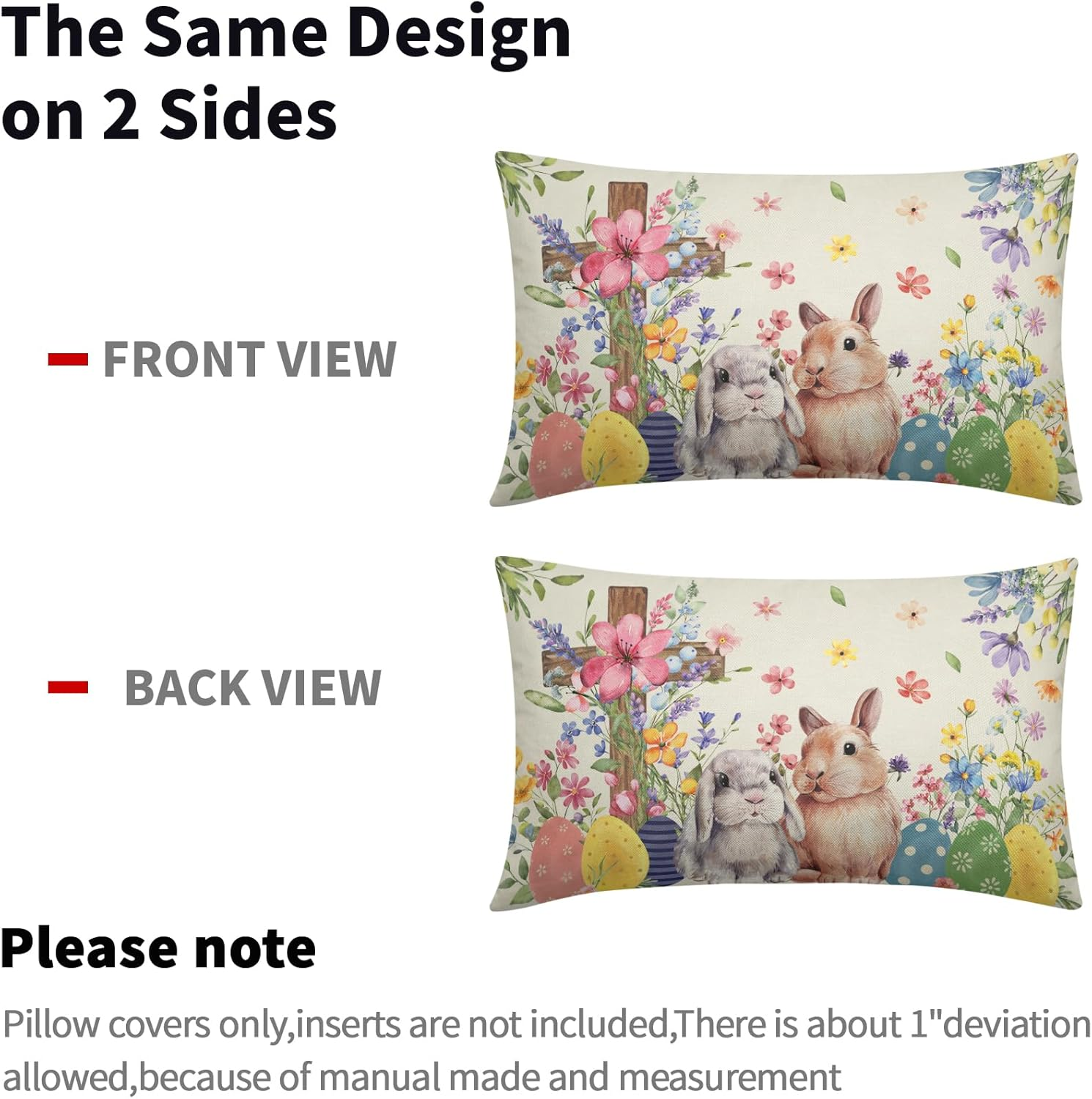 Store New Arrivals Add to Favorite View Feedback Contact GiftByRebecca has been in the US market for over 2 years and offers free delivery to the customer's home with professional customer service Easter Spring Pillow Covers 12X20 Set of 2, Rabbit Bunny Coloful Flower Cross Pink Floral Decorative Lumbar Throw Pillow Covers Outdoor Seasonal Holiday Farmhouse Cushion Cases Couch Sofa Bed Decor Description Cotton Linen Size: Fits 12 X 20 inches/30 X 50 cm pillowcases (without inserts). Warm Tips: To ensure a snug pillow/fill fit for ideal fluffiness, we make all easter 12x20 pillow covers slightly smaller than the insert size (approximately 1-2cm smaller) Material: Our 12x20 pillow covers spring are made of cotton linen fabric, which is thick, enduring, breathable, comfortable to touch and can be used outdoors. These vintage easter pillow covers feature a hidden zipper closure for an elegant look, beautifully sewn, smooth pull, and easy insertion and cleaning Spring Easter Decor: These spring throw pillow covers 12 x 20 feature the same spring bunny pink yellow blue purple colorful floral pattern printed on both sides. The simple and elegant design will create a modern and simple artistic style in your room, which is very suitable for matching with various furniture Ideal Gifts: These easter lumbar pillow covers 12x20 are perfect for home or sofa decoration and make an ideal gift for friends or family during holiday Easy Care: Our easter lumbar pillow covers can be hand or machine washed individually, hang dry or tumble dry low, do not bleach or iron and it will look like new again These cute style 12x20 easter pillow covers set of 2 are printed with simple yet delicate block print patterns, simple and elegant, perfect for your home decoration. Choose our spring 12x20 pillow covers to decorate your room, which can enhance your home life and give it a brand new look! An ideal addition for your room decor, these spring outdoor pillow covers 12x20 are the perfect home decor that can be mixed and matched with your other pillows and furniture. Ideal for decorating living rooms, bedrooms, sofas, offices, benches, porches, balconies and many other occasions. Specifications Type: 2 x decorative pillowcases Size: 12 X 20 inch/30 X 50 cm Material: Made of cotton linen, thick and enduring, comfortable to touch. Washing Care: Machine or hand washable, line dry or tumble dry low, please do not bleach. Warm Tips: Due to light brightness, there may be slight color differences between the picture and the actual product. Item model number SYM241128015 Style Country Rustic Number of Items 2 Color Rabbit Pink Flower Pattern Print Product Dimensions 12"L x 20"W Material Cotton Linen Country of Origin China Theme Easter Item Weight 5.6 ounces Batteries required No Shape Rectangular Special Feature Fade-Resistant Fabric Type Cotton Linen Size 12" x 20" (Pack of 2) ABOUT US We offer the best prices around on high quality products. Our E-store includes media such as books, movies, music and games while offering electronics, toys, sporting apparel, clothing, tools, general home, garden items and more. SHIPPING We are always working hard to ensure your package arrives as soon as possible. Please understand that some factors like weather, high postal traffic, and the performance of shipping companies are outside of our control. We offer free shipping to the lower 48 states and ship within 2 business days of payment, usually sooner. We do not accept P.O. Boxes. Please provide a physical address. For shipping outside of the continental USA, we only use eBay's Global Shipping Program. The item is shipped to KY and then sent to the rest of the world. International customers are responsible for all duties and taxes. Continue to 'check out' to calculate costs for shipping the item to your country. Messages regarding eBay's Global Shipping Program MUST be directed at eBay EXCLUSIVELY. RETURNS We offer a 30-Day Return Policy on items in which you are not completely satisfied with. You have the option of a full-refund or an exchange of the item. No returns are available on items shipped outside of the USA PAYMENT We accept PayPal. CONTACT US This page content is yet to come Please ad us to your favorite seller and visit again later Thank You CUSTOMER SATISFACTION We try our very best to make sure every customer is completely satisfied. If there's a problem, message us! We're happy to help. WE ACCEPT