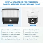 Rapidly Heating: Clean your facial towels in no time with our spa towel warmer. In just 5 minutes, it can heat up to 80??C temperature heat the towel, give the towel a deep cleaning, and giving you soothingly warm and clean towels Easy to Use: Use our towel warmers spa easily by following these simple steps. Roll the towels up and place them in the removable steamer case, adjust the knob, set the heating time and the heater will start working Large Capacity: The portable towel warmer can be divided into three small spaces and can accommodate up to 16 facial-sized towels or up to 6 large-sized towels. To take out the towels easily please use the tong we have included Safe Use: This luxury towel steamer features a timer that can be set to 10, 20, or 30 minutes and will automatically turn off when it reaches the set time, or when there is water shortage to avoid overheating and ensure safety. Multi Purpose: This towel steamer can be used not only for facials, but also for hot compress, relax muscles, relieve pain and relieve eyes pressure. And as a hot stone steamer, a bath towel warmer, a neck warmer, or for hot packs as well