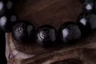 Ebony 15mm Beads Buddhist Prayer Bracelets Great Sculpture Buddha Bracelet