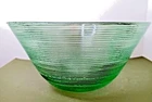 Add a touch of color and artistry to your table with this beautiful green glass bowl from Ecoglass. Made in Spain using recycled glass, this ribbed bowl is perfect for serving fruit, salad, or punch. With a diameter of 12 inches and a height of 5 inches, it is big enough to hold plenty of food but still fits comfortably on most tables. Its unique production style as art glass adds to the charm of this decorative piece that can also be used as a serving bowl for special occasions. Whether you're using it for a family dinner or a dinner party, this bowl is sure to impress your guests.