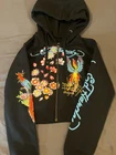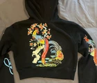 Elevate your style with this Ed Hardy Phoenix cropped jacket, perfect for any fashion-forward woman. The black color and Y2K design make it a statement piece that will turn heads. The jacket features a zip-up closure and is made from high-quality materials to ensure long-lasting wear. The brand, Ed Hardy, is known for its unique designs and this jacket is no exception. It is ideal for those who want to stand out from the crowd and make a statement. Whether you're going out with friends or running errands, this jacket is a great addition to any outfit.