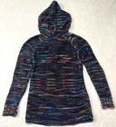 Cable knit multi-colored cotton and acrylic blend. Large front pocket, hooded Measurements in pics