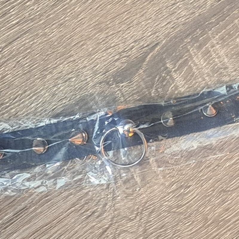 Adjustable Punk Rocker Black Studded Spike Neck Choker Collar with Small Center Ring Detail. New. Will ship fast and with care!