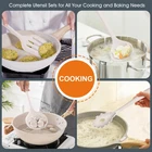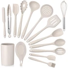 15 PIECE SET - E-far 15-piece cooking utensil set includes Slotted Turner, Soup Ladle, Slotted Straining Spoon, Slotted Serving Spoon, Serving Spoon, Spatula, Spaghetti Server, Tong, Large Baking Spatula, Small Baking Spatula, Jar Spatula, Whisk, Basting Brush, Spoon Rest and a matching holder that is roomy enough to fit your collection, Enjoy mixing, stirring flipping and serving with this useful, matching utensil set HEALTHY & SAFE SILICONE - Made from high-quality food grade silicone, Non-toxic, non-melting and odorless, No need to worry about chemicals leaching into your food, Can withstand temperatures up to 446°F, Less reactive with food and last longer than plastic kitchen utensils, Healthy and durable for daily kitchen use NON-STICK COOKWARE FRIENDLY - Soft silicone head is sturdy but flexible enough to scrape off every last bit of food, Won’t scratch, chip or harm those potentially dangerous non-stick pots and pans, Perfect tool to extend the life of your cookware, Ensure you have a safe and pleasant cooking journey ONE-PIECE CONSTRUCTION - Ergonomically designed and velvety smooth handle is comfortable to grip, Seamless design, Unlike others that loose their spatula portion from the handle, Will not break off or fall apart, No seams or cracks to trap food, which means healthier cooking and less clean up required, Easy to clean and dishwasher safe EASY TO USE & STORE - Khaki kitchen utensils set will pair well with just about any color scheme, Handy and versatile for all your cooking and baking needs, Hanging loop and large holder for easy hanging and storage, Keep your kitchen counter top clear of clutter, Ideal gift for Christmas, Thanksgiving, housewarming