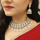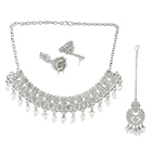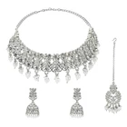 Efulgenz Crystal Choker Indian Jewelry Set Faux Kundan Pearl Crystal Stone Necklace Dangle Earrings Maang Tikka Head Chain Bollywood Wedding Bridal Jewelry for Women Product Details Color: White Brand: Efulgenz MPN: MNT1978_Color UPC: Does not apply EAN: Does not apply Department ‏ : ‎ womens Date First Available ‏ : ‎ May 27, 2024 Manufacturer ‏ : ‎ Jaipur Art Jewellery Brand, Seller, or Collection Name: Efulgenz Metal stamp: Copper Metal: alloy Material: Copper Gem Type: No Gemstone Item Length: 16 inches Clasp: S Hook Model number: MNT1978_Color Indian faux kundan jewelry set, crystal choker necklace bridal jewelry set, this antique traditional, boho, ethnic statement choker Indian jewelry set, choker necklace chandbali earrings maangtikka bridal jewelry set costume accessories for women and brides adds a traditional touch to your ensembles. Embellished with kundan stones, faux pearls and rhinestone, crystal, a classic fusion of exquisite craftsmanship and feminine elegance. This antique look jewelry goes with everything in your closet from ethnic outfit like saree, lehenga, gowns, suits on any wedding, party, engagement, ring ceremony, anniversary or any festive or special occasion or as fashion novelty costume jewelry. Ideal Valentine's,Anniversary, mother's day, women's day. CARE INSTRUCTIONS: Avoid contact with heat, chemicals and water. Clean with dry cotton cloth. Pack in an air tight container/ pouch after use. It is advisable to wear the jewellery after makeup.