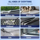 【Cleaning Dust More Efficient】 The newly upgraded 500 watt AC compressed air duster, powerful 40000 RPM air blower will generate 2.55-5.1OZ super strong wind, and clean your computer, keyboard, laptop, copier, medical equipment, camera, etc. more efficiently. 【Replaces Compressed Air Can】 Compared to single-use compressed canned air, our compressed air gun are more environmentally friendly and more economical. Stop letting canned air affect your health. A one-time investment in our electric air duster, it will provide you with pure, non-toxic air and serve you for a long time. 【Multifunctional Compressed Air】 The two-speed adjustable air duster come with a flat nozzle and a round nozzle, you can use it to clean different parts, switch different speed to achieve the best cleaning effect. Plus, it comes with an inflation head and three inflation nozzles, which means you can use it to inflate air mattresses, swimming rings, balloons, inflatable pools, and more. 【Easy To Use & Portable】 Once the nozzle of the keyboard cleaner is installed, it is only necessary to wave the trigger to use. Comes with 9.84FT wire. It measures only 8.3*6.2*2.9inch and weighs only 1.4lb. No matter how long you use it, you will never feel tired. You can easily put it in your backpack or toolbox and take it wherever you need it for work.