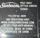 Sunbeam Holmes Electric Blanket Dual Control PAC-0531 Style U85KQ 4 Prong. J. Peterman might be reminiscent and say “As I listened to the hum of my generator echoing among the trees in the Malaysian forest I lay warm in my Cabana as I adjust my heating Blanket to the peak temperature with the Sunbeam P A C 0 5 3 1 dual Controllers” These controllers come as is untested (we have no blanket to test it) with the 4 prong connector blanket receptacle plug seen. Instruction tag has been Taped on as it had previously come off the wire. Please check specifications on the blanket you want to control and Inspect The Pictures Before Purchasing As This Is The Item Being Shipped. Controllers ONLY. This is an as is purchase and it is buyers responsibility to use for proper blanket at their own risk