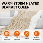 DUAL HEATING ZONES:Two controllers independently control the dual zones temperature and heating time of the heated blanket, quickly heating up in 3 minutes . The 16.5ft power cord to guarantee the flexibility and convenience during usage heated blanket queen size. 10 HEAT LEVELS & 12 HOURS AUTO OFF: The electric blanket has 10 heat settings and 12 hours automatic shutdown with a temperature range of 95°-131°F. More choice of temperature and timing settings meets your warmth needs. ANTI-STATIC FLANNEL: The queen heated blanket is made of sherpa and anti-static flannel which is a warm and skin-friendly fabric that gives you a fluffy touch. It is very suitable for working on sofas, beds, reading, or watching TV. SAFETY FIRST: Warm Storm heating blanket has overheating protection function,and ETL & FCC certification. When you are busy with other things or sleep at night and forget to turn off or set the time, if the electric blanket queen temperature is to high, the overheating protection will automatically trigger the automatic shutdown of heating. Ensure your safety and that of your family. MACHINE WASHABLE & AFTER-SALES: Please remove the controller before cleaning the queen electric blanket . If you have any questions during the use of the electric blanket, please contact us immediately. Product Description