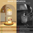 About this item Safety First: The candle warmer uses 50-watt halogen warming bulbs to melt candles with heat energy instead of an open flame, ensuring no smoke and increased safety. Dimmable and Timer Functions: The lamp includes a dimmer for adjusting the brightness and a timer that can be set for 1, 2, or 4 hours, providing convenience and control over the melting process. Versatile Fit: The lamp is designed to accommodate candles of different sizes, up to 6.3 inches in diameter, offering flexibility for various jar candle preferences. Elegant Gift Option: It's an excellent gift for candle enthusiasts, providing an alternative to traditional burning methods, enhancing home decor, and diffusing pleasant fragrances. Easy to Use: The lamp is straightforward to operate and includes a polished finish with a linen shade and metal body, adding a touch of elegance to any room.