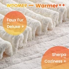 Upgraded Fabric: Enjoy the luxurious warmth of faux fur paired with a plush Sherpa reverse, adding both comfort and a stylish touch to your home decor. Safety First: A 4-hour auto-off feature ensures safe use during sleep. Dual spiral wires provide quick heating and prevent overheating. ETL certified and machine washable. Simple Control: Easily set your ideal temperature with a one-button controller offering 4 heat levels from 86°F to 113°F. Designed for easy use by everyone. Elegant Gift Box: Presented in a beautifully crafted gift box with chic floral patterns, this heating blanket is the perfect gift for the holiday season. What You Get: Woomer 77" x 84" electric heated blanket and long-term of after-sales service. All inquiries are responded to within 24 hours. Product Description The video showcases the product in use. The video guides you through product setup. The video compares multiple products. The video shows the product being unpacked. Personalized Heat for Ultimate Comfort One Button 4 Heating Levels Easy to control and customize ideal temperature from 85°F-115°F 4H Auto-off Reservation Thoughtful 4H auto-off and overheat protection 1 Giftable 2 Warm Plus 3 Machine Washable More Options Fabric Faux Fur & Sherpa Fabric Faux Fur & Sherpa Fabric Faux Fur & Sherpa Style & Size Rose Pattern Heated Throw 50x60 Style & Size Marbling Full Size Heated Blanket 77x84 Style & Size Rose Pattern Heated Blanket 90x100 Temp Settings 4 Heat Levels Temp Settings 10 Heat Levels Temp Settings 10 Heat Levels Shut-off Timer 4H auto-off Shut-off Timer 0.5-12h Timer (1h intervals) Shut-off Timer 0.5-12h Timer (1h intervals) Heat Zone One with one-button controller Heat Zone One Heat Zone Heat Zone Two independent Heating Zones with dual controllers