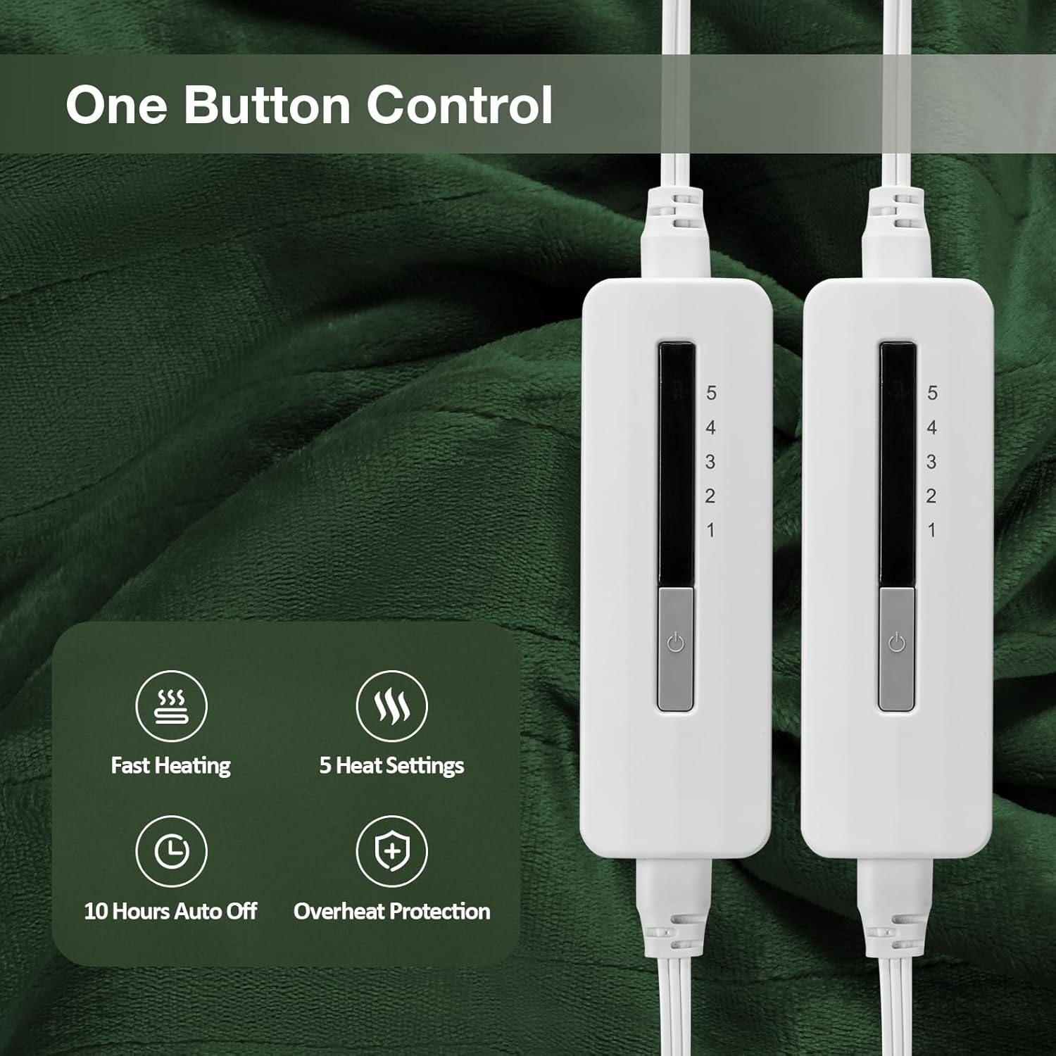 [Better Quality]:Our electric blankets are super soft and better thermal insulation.Provide you with a very comfortable feeling of use. [Dual Controller Design]:Enjoy the larger queen size of our electric blanket,the electric heated blanket queen size has dual control for different Needs. [Adjustable Heat Settings]:5 heating levels meet different needs and have a better sense of use. [Auto Off & Overheat Protect]:10 hours auto shut off,with overheating protection setting to ensure your safety during normal use. [Machine Washable]:Electric blankets can be machine washed. Be sure to unplug the controller power cord from the blanket before cleaning. Make sure the blanket is completely dry before use. Product Description Eydna Heated Electric Blanket Add to Cart Add to Cart Add to Cart Add to Cart Add to Cart Customer Reviews 4.1 out of 5 stars 267 4.1 out of 5 stars 267 4.1 out of 5 stars 267 3.8 out of 5 stars 98 4.1 out of 5 stars 267 Price $49.99 $ 49 . 99 $65.99 $ 65 . 99 $44.99 $ 44 . 99 $55.99 $ 55 . 99 $49.99 $ 49 . 99 Heating Levels 5 Levels 5 Levels 6 Levels 6 Levels 10 Levels Timer 10 Hours 10 Hours 10 Hours 10 Hours 1-12 Hours Size Full:72X84 Inch Queen:84X90 Inch Full:72X84 Inch Queen:84X90 Inch Full:72X84 Inch Color Green Darkgray Gray Camel Light Gray Machine Washable ✔ ✔ ✔ ✔ ✔