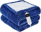 PREMIUM MATERIAL & MACHINE WASHABLE - Our Electric throw blanket is made of 220gsm flannel + 200gsm sherpa. This fabric is very soft, thicker and warmer than normal blankets even without electricity. Durable and does not shed. The diameter of the heating wire is 2.2 mm, and the existence of the heating wire is hardly felt during use, which is more comfortable. EASY TO USE - Our heated throw blanket have 10 heat levels, 8 hours auto shut off. Temperature range is 86-122°F. There is only one button on the controller to control the temperature, very convenient to use. They can be used on a bed, sofa, study room and office, so you can stay active and unrestrained. No need to worry about being trapped around the socket!Giving a feeling of warmth and security, it is an ideal gift of protection and warmth to the body. Overheat Protection: Overheat protection is designed for safety. If the electric blanket gets too hot, it will automatically shut off. Please do not use the electric blanket when it is tumbled drying or drying in the sun. MACHINE WASHABLE - The controller cord is detachable. Please take off the controller cord before washing, then toss the blanket into the washing machine on a gentle cycle. And for drying, to keep the electric heated blanket twin being its best, we recommend air-drying or low-temperature drying, and do not plug in until it's completely dry. 365 Days of After Sales Service - 365-Day Money Back Guarantee. If you encounter any quality problems within 12 months, you can contact us at any time. We have a 7x24-hour online customer service who can reply to your questions at any time. We strive to deliver an elevated customer experience Product Description