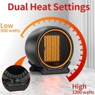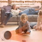 Note: Pl ease don't cover the fan when the machine working. Please don't use it for a long time. There is no light in the use of the product, and the picture is a display effect. Factory mass production, the product may have small scratches,we promise all products are brand new. F eatures: Small but Powerful This compact space heater is heated with advanced PTC ceramic, which emits extraordinary intense heat, instant comfort and warmth, mini lightweight and portable, perfect for desktop, countertop bedside, bedroom , bathroom, study, kitchen, office and indoor use. 2 Seconds Fast Heating Fan Mode This 1200W portable heater heats the air around you in 2 seconds! Quality space heaters use PTC ceramic heating technology and high-speed fan, quickly release a large amount of heat for whole house heating, save electricity effectively, long life, for your family's office, and provide a personalized and comfortable temperature. 2 Adjustable Heating Power Two heating modes and one natural wind mode are available, including 1200W (high), 800W (low) power settings .Just press the button you can enjoy comfortable warmth. Low Noise and Energy Saving Automatically adjusts the heating mode according to the room temperature: This indoor heater will save money on your electric bill while keeping you comfortable. Our portable electric heaters are more energy efficient and quieter than traditional ones. The working noise is only 45 decibels. The internal heaters will not interfere with sleeping, studying, reading or working, giving you an ultra-comfortable quiet space. Portable Mini Spac e Heater The low energy consumption heater is easy to carry, light weight and small in size. You can easily take the heater anywhere. Internal heaters are small enough that most people can use them in their bedrooms while they sleep. Heart Warming G ift for Winter This would be ideal for family, friends and girlfriends on cold winter days or while on vacation. When you hand it over to the gift, they will feel the warmth of your heart. Descriptions: Name:Smart Heater Fan Type:Heater Fan/Space Heater Features:800/1200W Power,PTC Material,Overload Protection,2 Levels Winds,Portable Design,Tip-Over Protection,3s Heating Rated voltage:110V,50Hz Power:800/1200W Gear: low gear 800W, high gear 1200W Noise: ≤50dB Applicable area: 10-20 ㎡ Heating mode: PTC ceramic heating Product size: 16.5*11*18cm Single weight: 0.80kg Plug:US Plug Color:White/Black Packages: 1x Space Heater fan 1x Manual