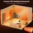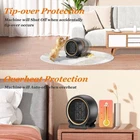 Note: Pl ease don't cover the fan when the machine working. Please don't use it for a long time. There is no light in the use of the product, and the picture is a display effect. Factory mass production, the product may have small scratches,we promise all products are brand new. F eatures: Small but Powerful This compact space heater is heated with advanced PTC ceramic, which emits extraordinary intense heat, instant comfort and warmth, mini lightweight and portable, perfect for desktop, countertop bedside, bedroom , bathroom, study, kitchen, office and indoor use. 2 Seconds Fast Heating Fan Mode This 1200W portable heater heats the air around you in 2 seconds! Quality space heaters use PTC ceramic heating technology and high-speed fan, quickly release a large amount of heat for whole house heating, save electricity effectively, long life, for your family's office, and provide a personalized and comfortable temperature. 2 Adjustable Heating Power Two heating modes and one natural wind mode are available, including 1200W (high), 800W (low) power settings .Just press the button you can enjoy comfortable warmth. Low Noise and Energy Saving Automatically adjusts the heating mode according to the room temperature: This indoor heater will save money on your electric bill while keeping you comfortable. Our portable electric heaters are more energy efficient and quieter than traditional ones. The working noise is only 45 decibels. The internal heaters will not interfere with sleeping, studying, reading or working, giving you an ultra-comfortable quiet space. Portable Mini Spac e Heater The low energy consumption heater is easy to carry, light weight and small in size. You can easily take the heater anywhere. Internal heaters are small enough that most people can use them in their bedrooms while they sleep. Heart Warming G ift for Winter This would be ideal for family, friends and girlfriends on cold winter days or while on vacation. When you hand it over to the gift, they will feel the warmth of your heart. Descriptions: Name:Smart Heater Fan Type:Heater Fan/Space Heater Features:800/1200W Power,PTC Material,Overload Protection,2 Levels Winds,Portable Design,Tip-Over Protection,3s Heating Rated voltage:110V,50Hz Power:800/1200W Gear: low gear 800W, high gear 1200W Noise: ≤50dB Applicable area: 10-20 ㎡ Heating mode: PTC ceramic heating Product size: 16.5*11*18cm Single weight: 0.80kg Plug:US Plug Color:White/Black Packages: 1x Space Heater fan 1x Manual
