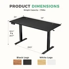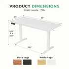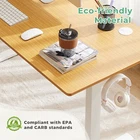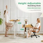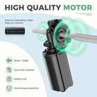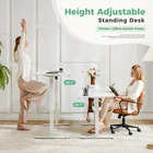 1. Adjustable height: This electric standing desk allows you to easily adjust the height from sitting to standing, promoting a healthy and productive work environment. 2. Splice board: The desk comes with a splice board, providing additional workspace for your computer, paperwork, or other office essentials. 3. Two hooks: The desk features two hooks for hanging bags, headphones, or other accessories, helping to keep your workspace organized and clutter-free. 4. Wire hole: With a convenient wire hole, you can easily route cables and cords to keep them organized and out of the way, creating a clean and tidy workspace. 5. Home office essential: This standing desk is a perfect addition to any home office, providing a comfortable and ergonomic workspace for working, studying, or gaming.