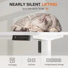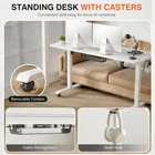 Healthy Working Style: Sitting for long periods of time at work puts a huge strain on our bodies, leading to back and neck problems. This standing desk will bring a healthy way of working, allow you to sit and stand alternatively which help relieving fatigue feeling during long time work, and make you more concentrated. Durable Quiet Motor: The motor is made of good quality and each has been tested more than ten inspection processes before assembling to the desk. You can adjust the height between 27.95” -46.85” at a speed of 1"/second with low noise. Memory Electric Lift: Compared with the ordinary workstations, this standing desk can easily control the height using buttons, so that it can be used by people of different heights in different scenes. The design of sitting/standing memory keys allows it to be adjusted quickly and accurately to your preset comfortable height. Sturdy Desk Legs: The desk legs are box frame structured, though it is made of steel material, it is not that heavy, it offers stableness and sturdiness in use. The wide T-shaped foot design makes the table maintain good stability even when used at the highest height. With Removable Caster: Standing desk are equipped with additional detachable casters for easy mobility to wherever you want, while the detachable attributes do not hinder stable daily use, enjoying the pleasure of use. Warmly Note: The table top is consisted of two pieces, it is not come in one complete piece. Product Description Height Adjustable Desk with Wheels Healthy Working Style Sitting for long periods of time at work puts a huge strain on our bodies, leading to back and neck problems. This standing desk will bring a healthy way of working, allow you to sit and stand alternatively which help relieving fatigue feeling during long time work, and make you more concentrated. Nearly silent lifting sound at less than 55 decibels and a 220-pound weight capacity for a fully satisfying experience Extraordinary Detailed Experience Removable Wheels Easy mobility to wherever you want, while do not hinder stable daily use Control Button Adjusted quickly and accurately to your preset comfortable height Cable Management Provide a neat and organized space for cluttered wires Desk Hook Keep your headphones or other related devices within reach