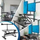 Store New Arrivals Add to Favorite View Feedback Contact Electric Standing Desk Converter with Dual Monitor Arms for 2 Screens (Max 32"), Large 35.4" Wide Desktop, Motorized Stand up Desk Riser, Keyboard Tray, USB, Black Stand up Desk Convertor Description Age Range Description Adult Style Modern Minimum Height 6.3 Inches Warranty Type Limited Is Electric Yes Model Number MI-8053 Desk Design Standing Desk Finish Types Painted or Powder Coated Maximum Height 19.3 Inches UL Listed No Room Type Office Includes All Assembly Tools Yes Is Customizable? No Required Assembly Yes Maximum Weight Recommendation 120 Pounds Base Alloy Steel Model Name MI-8053 Number of Drawers 2 Lifting Mechanism Electric Finish Type Painted or Powder Coated Base Color Black Natural Variation Type color, size, material, supplier, manufacturing_process Has Finished Back No Recommended Uses For Product Office, Working Furniture Leg Material Steel Item Weight 59 Pounds Top Material Type Engineered Wood Top Color Black Top Material Type Engineered Wood Number of Drawers 2 Special Feature Electric, Dual Monitor Arm Working Surface Diagonal Length 40.54 Inches Additional Features Electric, Dual Monitor Arm Mounting Type Tabletop Hutch Material Engineered Wood Color Black Product Grade like new Item Dimensions D x W x H 32.75"D x 35.4"W x 19.3"H Cabinet Configuration Freestanding Base Material Alloy Steel Global Trade Identification Number 00810041737694 Frame Joint Type screws, bolts Shape Rectangular Base Type Leg Shape Rectangular Desk design Standing Desk Furniture Finish Black powder-coated or painted Included Components Dual Monitor Mount, Standing Desk Converter Mfg Warranty Type (ie Parts, Labor) Limited warranty Product Dimensions 32.75"D x 35.4"W x 19.3"H Style Name Modern Size Large 35.4" Effortless Height Adjustment: Experience the convenience of a motorized sit to stand desk riser with the Mount-It! Electric Standing Desk Converter. Adjust your desk height between 6.3" and 19.3" with just the push of a button, allowing for a seamless transition from sitting to standing throughout your workday. Dual Monitor Flexibility: This sit stand desk converter is equipped with a robust dual monitor arm that can support two screens up to 32" each. Adjust and position your monitors for optimal viewing with the height-adjustable arms, ensuring ergonomic alignment and enhanced productivity. Spacious Work Surface: The large 35.4" x 23" desktop provides ample space for all your work essentials. Featuring a built-in device channel, it securely holds your tablet or smartphone within easy reach, perfect for multitasking and staying connected. Integrated USB Charging: Stay powered throughout the day without the clutter of extra cables. This adjustable standing desk converter includes an integrated USB charging station, allowing you to keep your devices fully charged and ready to use, enhancing your workspace functionality. Modern Design and Build: Crafted with a sleek black finish, the Mount-It! standing desk converter integrates seamlessly into any office environment. The sturdy construction supports up to 33 lbs, making it a reliable and stylish addition to your existing desk setup. Product Description The video showcases the product in use. The video guides you through product setup. The video compares multiple products. The video shows the product being unpacked. 1 Easy Up & Down 2 Fully Loaded 3 Room for All Your Stuff 4 Never Miss A Call 1 Height Adjustment 2 Monitor Sizes 3 Full Motion Mount MI-8053 Comparison Electric Height Adjustment Gas Spring Monitor Arm Included 35.4" x 23 Top Platform Size 47" x 23" Device Slot Included 33 lbs Weight Capacity 33 lbs Electric Height Adjustment Electric Monitor Arm Included 35.4" x 23 Top Platform Size 47" x 23" Device Slot Included 33 lbs Weight Capacity 33 lbs Electric Height Adjustment Gas Spring Monitor Arm Included 35.4" x 23 Top Platform Size 38" x 18" Device Slot Included 33 lbs Weight Capacity 33 lbs MI-8052 MI-8054 MI-15006 What size screens can the included dual monitor arm hold? The monitor mount that comes with this standing desk converter can hold two screens with 13" - 32" screen size and a max. weight of 22 lbs each. How does the height adjustment of the desk converter work? Thanks to the built-in motor the height can be conveniently and smoothly adjusted between 6.3" and 19.3" by simply pressing the button. What are the exact dimensions of the two platforms? The top platform measures 35.4" x 23.2" and the keyboard platform measures 35.4" x 11.8" Is the monitor mount compatible with the VESA hole pattern on my monitors? The monitor mount is compatible with VESA 75x75 and 100x100 patterns. In addition to the VESA pattern of your monitor, please check the size and weight of your screens to make sure they are within the limits. ABOUT US We offer the best prices around on high quality products. Our E-store includes media such as books, movies, music and games while offering electronics, toys, sporting apparel, clothing, tools, general home, garden items and more. SHIPPING We are always working hard to ensure your package arrives as soon as possible. Please understand that some factors like weather, high postal traffic, and the performance of shipping companies are outside of our control. We offer free shipping to the lower 48 states and ship within 2 business days of payment, usually sooner. We do not accept P.O. Boxes. Please provide a physical address. For shipping outside of the continental USA, we only use eBay's Global Shipping Program.The item is shipped to KY and then sent to the rest of the world. International customers are responsible for all duties and taxes. Continue to check out in order to calculate costs for shipping the item to your country. Messages regarding eBay's Global Shipping Program MUST be directed at eBay EXCLUSIVELY. RETURNS We offer a 30-Day Return Policy on items which you are not completely satisfied with. You have the option for a full-refund or 