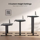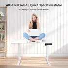 Product Description Select Your Desktop: Adjustable to fit a wide range of desktop sizes, the standing desk legs feature crossbars that can extend from 36.6″ to 52.4″ in length with a fixed 17.7″ width. Select your choice of desktop from 39.4″–63.3″ in length and 19.6″–27.6″ in depth to integrate the adjustable table legs with your home office design Sturdy Structure: Constructed from sturdy heavy-duty steel, the electric standing desk frame can securely hold up to 220 lbs of weight. The anti-collision technology helps to avoid damage to the desk or furniture during operation Improve Efficiency: This electric desk table legs is quick and easy to adjust the height from 28.3″ to 47.2″ tall.Enjoy seamless transitions between sitting and standing positions for greater comfort and increased productivity Smart Operation: The adjustable desk legs feature an intuitive control panel for quick height adjustment with 3 memory presets to save your favorite height settings,the electric standing desk frame operates at a quiet 45 dB to ensure a peaceful environment without distraction Easy to Assemble: The adjustable desk frame equipped with complete set of tools and parts, complete installation manual included 1 POWERFUL MOTOR 2 SIT TO STAND 3 LEVELING FEET SETTINGS ADJUSTMENT QUIET OPERATION Silent & Smooth Adjustments Adjust speed at 1’’/second, fast and convenient for you to set up the comfortable position between sitting and standing at any time. Adjustable Width The width of frame can be extended from 36.6’’ to 52.4’’ and fits a variety of spaces and a range of desktop sizes. Smart & Safe Multifunction The memory function enables you to store 3 favorite settings and makes adjusting the height simple. Sturdy Steel Frame Constructed with heavy-duty powder coating steel frame, the desk is workable for a 176lbs/80kg load capacity.