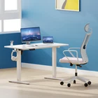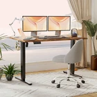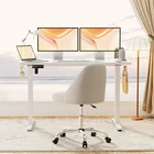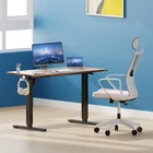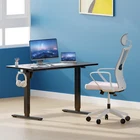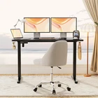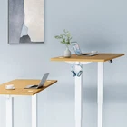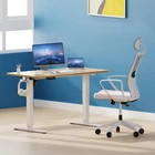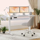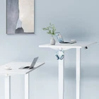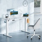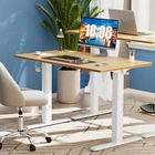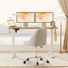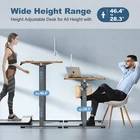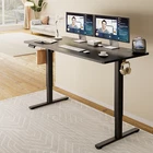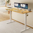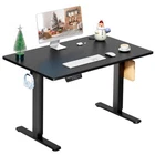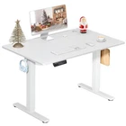 Product Description · Adjustable height: This electric standing desk allows you to easily adjust the height from sitting to standing, promoting a healthy and productive work environment. · Splice board: The desk comes with a splice board, providing additional workspace for your computer, paperwork, or other office essentials. Please note that the tabletop is made by splicing two pieces of wood and requires simple assembly, rather than being a single piece of wood. · Two hooks: The desk features two hooks for hanging bags, headphones, or other accessories, helping to keep your workspace organized and clutter-free. · Wire hole: With a convenient wire hole, you can easily route cables and cords to keep them organized and out of the way, creating a clean and tidy workspace. · Home office essential: This standing desk is a perfect addition to any home office, providing a comfortable and ergonomic workspace for working, studying, or gaming.