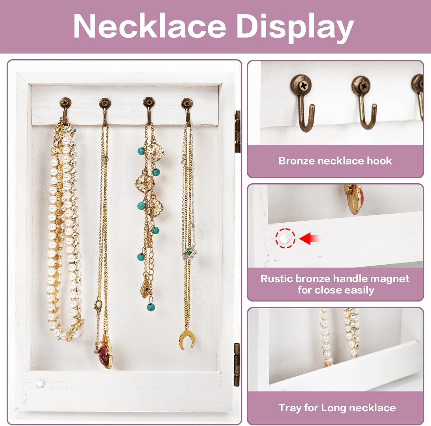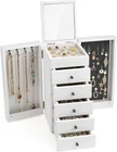 Free eBay listing template designed by dewiso.com Welcome to My Stores, Happy Shopping! ------------------ White Jewelry Box Wood for Women, 6-Layer Large Organizer Box with Mirror About this item Elegant Jewelry Box: Is your growing jewelry collections cluttering up on your dresser? The jewelry box designed with 6 tiers and 2 side doors. When it close, it will not take up much space, when it open, you will be surprised by its capacity, it is a pretty practical and charming addition to your home. Large Capacity: The top layer has a built-in mirror and ring tray, 5 pull-out drawers keep your jewelry away from getting messed up, easily store different sizes of jewelry, even necklaces, bangles, and big earrings like hooped earrings. 2 side doors for hanging chunky necklaces and plenty pairs of earrings. Natural Solid Wood: Made of rustic quality wood, sturdy and durable to stand heavy jewelry. Linen cloth-covered inside keeps your jewelry well against dust, scratches, damages. Metal delicate handle highlights retro beauty. The large wooden jewelry box can last for years. Ideal Gift for Loved One: Whoever your Loved one's Mom, Wife, Daughter, or Girlfriend, the jewelry box is even also perfect as a housewarming present, and an anniversary gift, we can be sure this will be the most practical and memorable gift they have ever received. Product Description Color White Material Wood Style Vintage Special Feature Earring organizer, Big capacity, Necklace organizer, Wood Style, Earring display organizer Recommended Uses For Product Ring Product Dimensions 6.1"D x 8.1"W x 12.5"H Target Audience Women, Girls Shape Rectangular Occasion Christmas, New Year, Anniversary, Thanksgiving, Valentine's Day Mounting Type Freestanding Finish Type Polished Inner Material Linen Closure Type Latch Number of Drawers 5 Number of Compartments 5 Jewelry Storage Type Jewelry Box Number of Items 1 Shipping Tracking number: Available We use a selection of shipping services such as UPS, FedEx, USPS etc. We only ship to the lower 48 states, no APO/FPO addresses or PO Boxes allowed. Local pickups and combined shipping options are not provided at this time. Contact us We can be contacted at any time through eBay messages if you have any questions, comments or product requests. We will respond to you within 24 hours and do our best to help you out! We encourage our customers to contact us with any questions or concerns! We'd like to be sure you are completely satisfied with your purchase