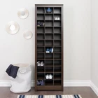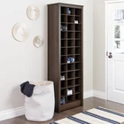 SHOE ORGANIZER: The Shoe organizer cabinet with 36 cube shelves is a perfect shoe storage solution for decluttering your entryway or mudroom. CLOSET SHOE ORGANIZER: Besides serving as a shoe organizer for entryway, this versatile cabinet can also store accessories making it a multi-purpose closet shoe organizer for your home. WOODEN SHOE ORGANIZER: This shoe storage cabinet, made from non-toxic, CARB-2 compliant laminated composite woods, showcases North American craftsmanship and quality in every wooden shoe organizer. SLIM SHOE CABINET FOR ENTRYWAY: This shoe cabinet for entryway slim design ships flat-packed with instructions for hassle-free assembly. Its space-saving shoe storage design won't compromise your room's aesthetics. SHOE CUBBY: Measuring 13"D x 23.5"W x 72.5"H, this shoe organizer cabinet maximizes storage with its 36 shoe cubbies. Each shoe cubby measures at 11.75"D x 7"W x 5.25"H, creating an efficient entryway shoe storage system.