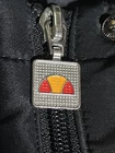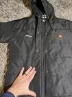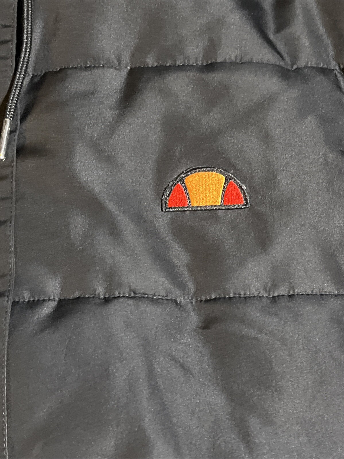 Stay warm and stylish with this black Ellesse Pejo puffer jacket. The jacket features a softshell fabric type with a polyester lining and insulation material, making it perfect for winter, summer, and spring. It has a mid-length jacket/coat length and long sleeves, with a regular fit that accommodates a size 2. This hooded jacket comes with both zip and snap closures, making it easy to wear and take off. It has a solid pattern with quilted accents and the Ellesse logo, giving it a designer and classic outdoor look. The jacket is machine washable, making it easy to maintain. Ideal for travel and casual occasions, this Ellesse Pejo jacket is a perfect addition to your wardrobe.