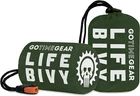 Polyethylene Imported Ultimate Survival Companion: The Go Time Gear Life Bivy Sack is an indispensable component of your survival kit, ideal for your go bag or survival bag. Utilize it as an emergency sleeping bag for survival shelter or a waterproof bivy when camping, hiking, or facing unexpected winter weather Built For Endurance: Our emergency sleeping bags for survival are crafted from military-grade, tear-proof PET Mylar, making it windproof and waterproof. This life bivy emergency sleeping bag is designed to reflect 90% of your body heat, it is an essential survival sleeping bag for all seasons, ensuring warmth and protection during winter emergencies Stay Safe And Warm: In need of an emergency shelter? Our survival bivy is your reliable choice. It shields you from rain, wind, and snow, and can be used as a liner in your bivvy sleeping bag for additional warmth during cold winter nights, making it vital survival gear and supplies Compact And Powerful: Weighing just 4.1 oz, this thermal sleeping bag bivy is remarkably compact. This emergency bivy sack fits neatly into a 4" x 3" stuff sack and includes a 120-decibel whistle, ideal for signaling rescuers up to a mile away during emergencies, making it a valuable addition to your go bag emergency backpack Trusted Go Time Gear: Our camping bivy sacks are designed for those in need of reliable zombie survival gear. Whether prepping a car emergency bag, life tent for hiking, or a bug out bag, our bivy gear ensures you are covered. Our emergency blankets for survival are designed in the USA Product Description The video showcases the product in use. The video guides you through product setup. The video compares multiple products. The video shows the product being unpacked. Paracord Drawstring & Sack Every Life Bivy comes packed in a 4x3in (10.16 x 7.62cm) stuff sack. Use the paracord drawstring to start fires, or repair gear Engineered for Warmth The Go Time Gear Life Bivy is made from PET mylar with a reflective interior that sends 90% of your body heat back to you. 120 Decibel Survival Whistle The drawstring features a detachable survival whistle capable of reaching 120 decibels to alert rescuers up to a full mile away. Repair Gear & Start Fire Use the threads inside the drawstring can be used to repair gear or as kindling to help start a fire. Add to Cart Add to Cart Add to Cart Add to Cart Add to Cart Customer Reviews 4.6 out of 5 stars 11,297 4.6 out of 5 stars 4,996 4.7 out of 5 stars 275 4.7 out of 5 stars 55 4.7 out of 5 stars 211 Price $19.95 $ 19 . 95 $19.95 $ 19 . 95 $15.99 $ 15 . 99 $17.99 $ 17 . 99 $14.49 $ 14 . 49 Size 7.8 ft x 4.8 ft 3 ft x 7 ft 57 in x 40 in 40 in x 40 in 63 in x 83 in Weight 0.50lbs (8.7oz) 0.25lbs (4.1oz) 0.18lbs (3oz) 1.15lbs (18oz) 0.14lbs (2.2oz) Material PET Mylar PET Mylar PET Mylar Fiberglass PET Mylar Waterproof ✔ ✔ ✔ ✘ ✔ Windproof ✔ ✔ ✔ ✘ ✔ Survival Whistle ✔ ✔ ✔ ✘ ✘ Bundles With Life Tent, Emergency Blankets Life Tent N/A N/A Life Tent Multi-pack Options 1pk, 2pk, 4pk 1pk, 2pk, 4pk N/A N/A 4pk, 12pk