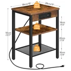 Side Table with Outlets and USB Ports: The charging station includes 2 3-prong AC outlets and 2 USB ports, meeting your needs to charge your phone, desk lamp and laptop freely. 59 inches power cord provides great convenience for daily use Adjustable Shelves for Storage: This 3-tier sofa table with two open and adjustable shelves can be exchanged freely between shelf and mesh rack upon your preferences. Personalized large storage space is convenient for you to put articles, making your room far away from clutter! Multifunctional Use: 15"L x 11"W x 21.7"H in size, this bedside table features space saving and lightweight design in order to move and carry effortlessly. Rustic brown finish and elegant style goes well with your living room, bedroom, balcony, dorm, study and other tight spaces! Firm and Stable: The steadiness of this industrial end table comes with solid matte black metal legs and shelves. 4 adjustable feet support the balance of this side table on uneven ground and protection from scratch on the floor Assembly is a Breeze: Thanks to the explanatory & easy-to-understand instructions and simple structure of the side table, all you need is to follow the specific steps and swing the Allen key supplied. Everything is done in minutes. So don't wait any longer and enjoy it to your home right now