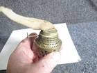 Offering for sale an antique Brass oil lamp brass burner English made 2 1/8 inches in height--2.25 inches in diameter--thread 1 1/8 inches in diameter. Has old wick