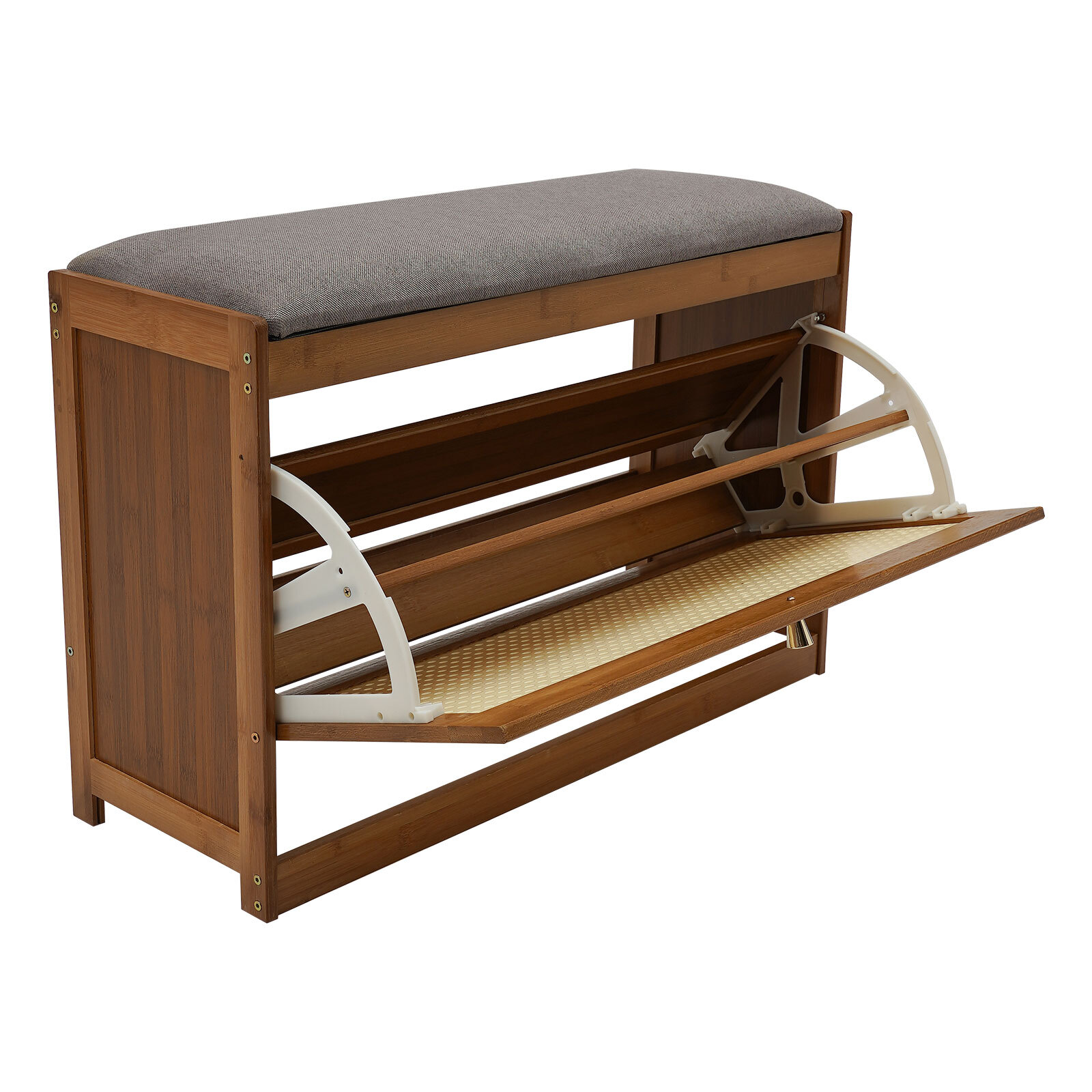Specification Material: Bamboo, Composite Board, ABS, Sponge, Linen, Hardware Color: Dark Brown Shape: Rectangle Process: Spray Painting Mount Type: Free Standing Assembly Required: Yes Overall Load-bearing Capacity: About 100kg/220.5 lbs Door Width: 34cm/13.4in Overall Product Size: 70*24*44cm/27.5*9.4*17.3in Package Included 1* Shoe Storage Stool 1* Glove All Accessories for Assembly Entryway Shoes Bench Shoe Storage Stool Shoe Rack Organizer Cabinet 220 lbs Load Specification Material: Bamboo, Composite Board, ABS, Sponge, Linen, Hardware Color: Dark Brown Shape: Rectangle Process: Spray Painting Mount Type: Free Standing Assembly Required: Yes Overall Load-bearing Capacity: About 100kg/220.5 lbs Door Width: 34cm/13.4in Overall Product Size: 70*24*44cm/27.5*9.4*17.3in Package Included 1* Shoe Storage Stool 1* Glove All Accessories for Assembly Description Do you hate coming home to a mess of shoes? Why not take a look at this shoe storage stool from us? It is made of high-quality premium materials and has a removable cushion. The exquisite workmanship provides it with unparalleled sturdiness and durability. The two-tier space allows you to store and organize your shoes, and tidy up your entryway. Key Features Durable and Sturdy: It is made of bamboo and composite board and adopts a spraying paint process, which is hard, e nvironmentally friendly, corrosion-resistant, and insect-resistant , ensuring a long service life. Comfortable Experience: The cushion with a built-in sponge allows you to comfortably sit and change your shoes, which is very convenient. Thoughtful Design: This product adopts a flip d oor design, making it easy to open and close. It is effective in preventing puppies from chewing on your shoes. In addition, the ABS door with small holes ensures air circulation in the cabinet and makes the shoes dry, avoiding producing an unpleasant odor. Large Capacity: With a two-tier storage space, it can easily store your daily shoes, and the middle shelf can removed to change the tier spacing, allowing you to store different kinds of shoes. Multi-functional Use: It can work as a stool and a shoe storage cabinet at the same time, solving the shoe storage problem at the entrance and providing a comfortable shoe-changing experience, ideal for families. Strong Load-bearing: Sturdy materials and stable construction provide an effective weight bearing of approximately 220.5 lbs, allowing you to sit down and change your shoes with confidence. Simple Aesthetic Style: The pleasing dark brown color and intricate mesh weave pattern create a touch of elegance and casualness. It blends well with a variety of interior styles to enhance home taste. Easy to Clean: The smooth surface and simple structure allow you to easily wipe away stains with a soft cloth, creating a clean and healthy environment for you. Customer Service: We aim to provide quality products and services. If you have any problems, please feel free to contact us. We will reply and solve the problem for you as soon as possible. Details Raised Bottom: It allows for convenient floor cleaning and can prevent moisture. Rotary Shaft Bracket: It has a certain buffering effect and reduces the noise when opening and closing the door. Hardware Handle: It facilitates the opening and closing of the door while adding a touch of design to the whole product. Non-slip Bottom Feet: They can effectively stabilize the shoe-changing stool and prevent accidental slipping. Smooth Edges: The smooth and burr-free edges enhance the beauty of the product and better care for your skin when installing and cleaning it. Application It is suitable for storing all kinds of shoes, ideal for placing in the entryway, bedroom, or parlor. Notes Please note that shoes are not included. Please do not collide, knock, or rub with hard objects to avoid scratching or damaging the gloss of the product surface. Please do not use corrosive detergent, or hard objects for cleaning. It is recommended to use a soft cloth for wiping. Please check the color and size before purchasing. Bamboo products are made of natural materials, which will inevitably lead to different textures, knots, halos, gaps, and spots, but they will not affect beauty and use. Bamboo products should not be exposed to the sun, or in a dark, and humid place for a long time to avoid cracking, deformation, and mildew. Please note that the number of shoes that can be stored will vary depending on the size and height of the shoes. Please allow the slight color difference caused by the shooting light and 1-3cm error due to manual measurement and make sure you do not mind before ordering. Payment Delivery details Terms of sales About us Contact us Payment We accept ebay payment 。 Fees such as import duties, taxes are not included in the item price or shipping costs. These charges are the buyer's responsibility. Delivery details Shipping: 2-9 working days to: USA Terms of sales We maintain high standards of excellence and strive for hundred percent customer satisfaction. Feedback is very important to us. We hope that you contact us immediately before you give neutral or negative feedback, so that we can address your concerns. It is impossible to address issues if we do not know about them! About us Your satis faction is our ultimate goal. We work hard to earn your trust and future business. Our certified technicians have tested each item before shipping. The unit comes with 1 year limited warranty on all manufacturing defects. a) If you receive a defective item, you may return it or ask for a discount. Please contact us within 14 days after you receive the package. b) What you returned must be intact and in its original packaging as re? u. Customer is responsible for shipping costs of the returned item. c) We will cover the cost of shipping back t with the shipping rate indicated in the registration page. We will send you a new unit or refund the full payment you paid. Thank you. Contact us Business Hour Business 