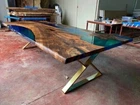 Can be Customize, Please message your desired shape and size . Epoxy Color can also change as per buyer requirement. This is a Epoxy Resin Gaming or Trading Desk made with Walnut which is beautified with colored pigment . The resin river table is brand new and the contemporary design would be a unique addition to your home. With its perfect combination of style and function this piece of furniture is sure to be the star of any room. This modern table will also make for an awesome gift for your friends or relatives. Each one is created with high quality resin and individually handcrafted. Resin is a highly reflective medium which will catch anyone’s eye walking into the room. All tables are finished to the highest standard. The epoxy resin is very strong & durable with specialised UV resistance. The tables are delivered flat packed. Simply bolt the legs. This listing is for a custom Live edge Wooden Table. We have access to thousands of live edge slabs of domestic and exotic species that are imported from around the globe. We use only the highest quality of hardwoods and materials in our work, and believe only in perfection. Kindly Note: As raw wood is used in its natural form and shape to make the table, the table shown in the photos has already been purchased so actual product may vary from the picture shown. Kindly Note: Any accessories/Chairs and legs shown in picture NOT included in given prices. if you want legs then you are to pay spare money. Please contact me if you have any kind of query. Kindly Note: Please contact me if you have any kind of query.Buyers are liable for any customs and import taxes that may apply. I'm not liable for delays due to customs. Buyers are liable for any customs and import taxes that may apply. I'm not liable for delays due to customs.