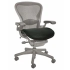 Features: * The Stratta Seat Cushion is the first foam seat cushion specifically designed to work on the Herman Miller Aeron chair. * Fits snug over the seat and requiring no tools for installation; the Stratta Seat Cushion will have you sitting comfortably in under 5 min. * The seat cushion has 2" of high density foam to soften the seat while still allowing your body weight to be evenly distributed over your sitting area. The Stratta Seat Cushion covers the entire seat including the hard plastic edges. Great item if you feel the chair 'digging' into your legs or thighs. * Attaches via hook and loop straps to the frame of the chair. No tools, required. * Fits many popular mesh chairs. * Certified Green - uses BioFlex Foam made of a soybean derivative * Available in black and two sizes. The standard Aeron chair with two dots on the back to identify its size we use the Stratta B cushion. For the XL or three dot Aeron we use the C Stratta cushion. Both are designed to fit the seated surface with a foam cushion. * Size B fits Aeron Chair size A & B: 19"D x 18-1/2"W * Size C fits Aeron Chair size C: 21"D x 19-1/2"W * Lead-time: 2 weeks + transit time * Warranty: 90-day manufacturer's warranty for manufacturer's defects. The Stratta Mesh-Chair Seat Cushion by Bodybilt® is designed to retrofit your Herman Miller Aeron or other mesh chair with this comfortable seat cushion. Not only does this specially-designed cushion increase seat comfort, it also reduces instances of clothing fabric pulls. Slips on easily. Made with environmentally-friendly BioFlex™Hybrid soy-based foam. Spot clean with a mild solvent, an upholstery shampoo, or the foam from a mild detergent. When using a solvent or dry cleaning product, follow instructions carefully and clean only in a well-ventilated room. Avoid any product that contains carbon tetrachloride or other toxic materials. With either method, pretest a small area before proceeding. Always rinse promptly with clean water.