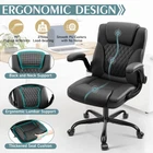 Product Description: PU Leather Office Chair: This executive desk chair is made of quality waterproof and stain-resistant PU leather material, which is not easy to stain and crack. With high density sponge padding, the upholstered chair leather appearance looks more natural Ergonomic Comfort: 3.94 Inches height adjustable high back leather chair with 360° free swivel. Computer chair with curved padded backrest provides ergonomic lumbar support that releases back pressure for resting Flip-Up Armrests For Space Saving: The gaming chair is equipped with 90° flip-up adjustable armrests, just lift the armrests and push them under the desk to save 1.2㎡ of space in your home High Quality Bulid: Heavy duty rubber wheels that are smooth and silent on a variety of floors and won't scratch your floors. The office chair uses SGS certified level 3 gas lift, with a weight capacity of 300 lbs, suitable for most big and tall people Rocking Function: The small chair allows for a simple rocking function when you are resting, pulling the handle to tilt back for comfort. Push in to stop tilting Easy to Set up: The frame of the cushion made of FSC-Certified wood. Installation can be completed in fifteen mins according to the supplied installation video or manual. Specification: Color: Black Product Dimensions: 26"D x 26"W x 40"H Back Style: Solid Back Material: Faux Leather Item Weight: 26 Pounds Frame Material: Nylon Seat Material Type: Faux Leather