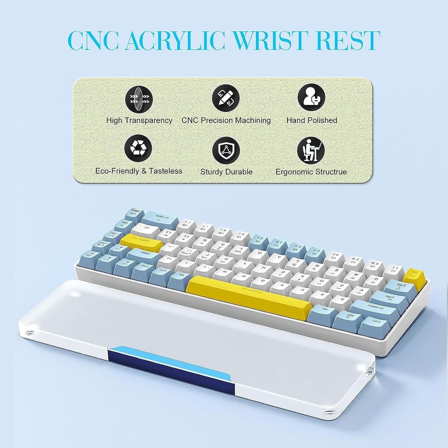 This acrylic wrist rest is a game-changer for long typing sessions! The sleek, crystal-clear design looks premium on any desk, while the smooth surface provides perfect support to prevent wrist strain. It stays firmly in place thanks to the anti-slip base, and the generous size fits TKL keyboards perfectly. Super easy to clean and surprisingly durable – definitely worth it for home, office, or gaming setups!