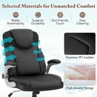 This chair is a game-changer for my home office! The PU leather feels luxurious, and the thick cushion keeps me comfy during long work sessions. The flip-up armrests are super convenient when I need extra space, and the adjustable height lets me find the perfect position. Sturdy build, smooth swivel, and great lumbar support—totally worth it for the price. Love the sleek black design too!