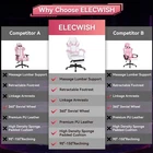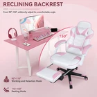 Features Ergonomic Comfort: With segmented padding designed to give highly contoured support when and where you need it most. 90°- 180°Reclining Office Chairs: The backrest of the gaming chair can be adjusted from 90 to 180° High Load-bearing Design: The seat of gaming chair is made of memory rebound sponge, which has strong elasticity and is not easily deformed. Retractable footrest, make you more relaxed during the break. High quality leather cushion, comfortable sitting, scratch resistant. Multi-function adjustment, can be adjusted to any position you prefer. Specification: Color: White&Pink Material: Leather + Elastic Fabric Max. Load Bearing: 150kg/330lb Backrest Size: 32''x20.8'' Sitting Size: 21''x21'' (Please understand an error of 1-3cm caused by manual measurement!) Applicable Height: 155cm-190cm Caring for Your Elbow Soft and Comfortable Sitting Ergonomic back Pink soft armrest covers, simple sense is supple, give elbow the gentleness caress 3.25'' thick cushion, soft and comfortable, good resilience, not easy to collapse 3D wraps the back of the chair, which fits the curve of the back and provides good support and reduces the stress of sedentary sitting Linkage armrest Adjustable footrest closest waist pillow Keep the desk flat during the lift. It does not affect the placement of items on the desktop, so that the switching of working state is more simple and convenient. Retractable footstool does not occupy space back to thick steel pipe + high elastic sponge, effectively support legs, improve sleeping comfort Using the latest UV printing and dyeing process, full of healing pink, double cuteness. On Nov 1, 2022 at 17:49:04 PDT, seller added the following information: On Jun 26, 2024 at 04:12:06 PDT, seller added the following information: