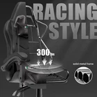 Ergonomic Gaming Chair PU Leather, Adjustable, Reclining, Lumbar Support Introducing this awesome Gaming Chair, designed to seamlessly contour to your body and provide the ultimate racing chair experience. Made with high-quality PU leather, this chair boasts a sleek and futuristic look, while its ergonomic design ensures all-around protection for your bone health. Perfect for gaming, resting, and working, this Gaming Chair combines top-notch materials, quality, and exceptional customer service to elevate your comfort and performance. Specification: Adjustable Massage Lumbar Pad 90-155 Degree Adjustable Seat Backrest Adjustable Upper and Lower Arms Flat Soft Seat Cushion Adjustable Headrest About this item: Experience the Racing Chair Feel : Seamlessly contours to your body with a strong integrated metal frame and certified safety explosion-proof cylinder. Stylish design complements your PC setup while providing the utmost comfort for focused gaming. Luxurious Comfort While You Play : Crafted from high-quality faux leather, this chair resists scratches, stains, peeling, and cracking. Highly breathable and padded with high-density cold-molded foam for long-lasting comfort. Ergonomic Design for Gamers : Large-angle reclining function adjustable between 90° and 155°, with adjustable and removable headrest and lumbar support. Provides ample lumbar support and eases back pain during long gaming sessions. Easy Assembly : All necessary components and instructions included, allowing for easy assembly in 10-15 minutes. Contact us for assistance if needed. Features: Material : PU Leather Maximum Capacity : 300lbs Seating Area Dimension : 20.9'' x 24'' (W x D) Overall Dimension : 26.77" x 26.77" x 52.75" (L x W x H) Racing Style Gaming Chair All-Steel Frame for Greater Stability Ergonomic Design, Slow Rebound Foam Cushion 90-155 Degree Adjustable Seat Backrest 300lbs Max Capacity, 360 Degree Swivel Wheels Elevate your gaming setup with this Gaming Chair, offering unparalleled comfort, durability, and style. Perfect for gamers seeking a high-performance chair that supports their gaming and working needs.