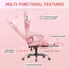 This gaming chair is a total game-changer! The massage lumbar pillow is amazing—just plug it in and feel the tension melt away. The footrest is super comfy for long sessions, and the breathable faux leather keeps me cool. Sturdy metal frame holds up well, and the back pocket is perfect for storing my phone or controller. Super stylish in pink too—love it!