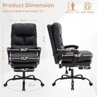 Menu 1. We require immediate payment. 2. We currently accept payment via eBay managed payments only. 3. Once payment is cleared, we will dispatch your shipment within 1-3 business days. Please refer to the "Shipping" tab for more information regarding shipping speed to your destination. Ergonomic Office Chair with Footrest, Leather High Back Executive Office Chair for Working Gaming with Lumbar Support(Obsidian Black) Product description 【NEW UPGRADE EXECUTIVE OFFICE CHAIR】Designed with built-in lumbar support, integrated headrest, and padded armrest, this high back executive office chair gently embraces your body and keeps your spine in a neutral position, boosts a strong, healthy posture, offer the luxurious comfort of a sofa. It can hold up to 300 pounds, will be your perfect companion during your work and leisure time 【ERGONOMIC DESIGN OFFICE CHAIR OFFERS ALL-DAY COMFORT】Thickened headrest and segmented padded high backrest fit to the curve of human spine can provide strong support and help you release back and lumbar pressure. Sunken surrounded seat and waterfall seat edge can keep you away from the numbness caused by long hours sitting. The ergonomic office chair lets you easily adjust the seat height and the angle of the seat backrest from 100°-145°. Also, the retractable footrest can support your legs when napping 【LEATHER ARISTOCRAT & MATTRESS-LIKE PADDING OFFICE CHAIR】The executive leather office chair is upholstered in 5-year hydrolysis-resistant cat-scratch leather which is waterproof and resistant stains, easy to wipe cleaned and lasts for extended period of time. Even if you have naughty critters in the house, you don't have to worry about their sharp claws scratching the chair. The wide seat and backrest are filled with soft dolls cotton and high-density foam to prevents collapses 【OFFICE CHAIR CUSHIONED LINKAGE ARMRESTS & INVEST IN QUALITY】Armrests adopt linkage design to strong support wrist to elbow withthe backrecline releg body pressure, soft padding protects your elbows from hard surfaces. Upgraded silver-plated heavy-duty base and smooth chairwheel are BIFMA certified, premium and practical. SGS certified 4-stage air lift cylinders are height adjustable easily. The 360 swivel office desk chair features top standard rubber chair wheels that ensure quite and easy gliding 【CHANCE TO EXPERIENCE A LUXURIOUS EXECUTIVE OFFICE CHAIR】Each executive office chair is designed for unparalleled comfort. Comes with all hardware & necessary tools, this computer desk chair is easy and quickly to assemble according to the instructions on the package, only 15-20 minutes required to complete the entire installation process. We are certain that you will love our executive office chair but if for any reason you are not completely satisfied, our helpful, prompt and friendly customer service specialists are at your disposal PLEASE MESSAGE US IF YOU HAVE ANY OTHER QUESTIONS, AND MANY THANKS FOR READING ALL OF THIS. Copyright ©#. All Rights Reserved.