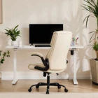 【Upgrade High Back Chair for Relieve Fatigue】- According to the upgrade ergonomic supporting cervical vertebrae design, our desk chair will reduce your back and vertebrae pain when you are long time working, segmented padded high back and seat with ultra cushioning give you extreme comfort experience. This ergonomics office chair is best choice for work. 【PU Leather Executive Chair】- Leather office chair cradles your body with soft leather and a double padded foam seat cushion, 275 pound weight capacity, padded armrest for an upscale look and max comfort you can sink into it, this executive chair will improve your work efficiency, work and rest go together. 【Ergonomic Flip-up Armrest】- Armrest length 15", seat-to-armrest height 9.4", and the armrests can be flipped to adjust your relaxed posture. Flip-up armrests to allow for more flexibility and motion range when desired. 【High-Quality 】- This Chair has a Heavy duty nylon wheelbase, 360° rolling wheels on our home office chair are flexible and suitable for your office environment. The tilt function with position lock and 120° back adjustment, SAFE AND COMFORT, are ready for your office rest, perfect for home, office and boss desk! 【Easy to Set up】 - Comes with all hardware & necessary tools, this computer desk chair is easy and quickly to assemble according to the instructions on the package, only 15-20 minutes required to complete the entire installation process.