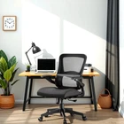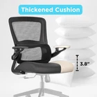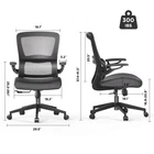 Space-Saving Design: This ergonomic mesh office chair features flip-up armrests and a compact design, making it ideal for home offices, gaming, or study spaces. It maximizes your workspace without compromising on comfort Ergonomic Lumbar Support: Enjoy exceptional lumbar support with a breathable mesh back and high-back design. The 3.8" thick cushion ensures long-lasting comfort, perfect for extended work or gaming sessions Fully Adjustable for Personalized Comfort: With a 4" height adjustment and a 90°-125° tilt function, this office chair adapts to different body types. The 360° swivel and adjustable height offer a custom seating experience for students and professionals alike Reliable Build: Designed for daily use, this mesh office chair supports up to 300 lbs with a robust base and SGS class-3 gas lift. The high-density foam cushion and durable mesh provide consistent comfort and stability Easy Assembly with Comprehensive Support: Assembling your chair is quick and easy with the included manual and tools, taking just 30 minutes. Enjoy peace of mind with a 60-day replacement service, 5-year warranty on parts, and 24/7 customer support