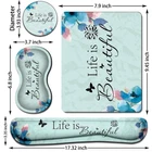 Keyboard Wrist Rest and Mouse Pad + Mouse Wrist Rest+ Coaster [4 in 1], Memory Foam Wrist Support Non-Slip Base for Office & Home Easy Typing & Pain Relief, Life is Beautiful Product Details Color: Life is Beautiful Brand: VSOJSOJKE MPN: VSO-V8-MouseP-V4-22 UPC: Does not apply EAN: Does not apply Size: Medium Material: Memory Foam, Lycra silk Color: Life is Beautiful Brand: VSOJSOJKE Product Dimensions: 17.32"L x 7.9"W Style: Uplifting Special Feature: Ergonomic, Non-slip, Wrist Support Item Weight: 8.2 Ounces Keyboard Description: Ergonomic Cover Material: Lycra silk Compatible Devices: Keyboard, Mouse Pattern: Floral Fill Material: Memory Foam Form Factor: Ergonomic Shape: Rectangular Is heat sensitive?: No Manufacturer: VSOJSOJKE Number of Items: 1 Item model number: VSO-V8-MouseP-V4-22 Item Weight: 8.2 ounces Product Dimensions: 17.32 x 3.7 x 0.98 inches Item Dimensions LxWxH: 17.32 x 3.7 x 0.98 inches Country of Origin: China Date First Available: November 3, 2023 Super SmoothThe fine texture and smooth surface of the mouse pad give your mouse sensor a unique combination of speed and control that is compatible with both mechanical and optical mice. You GetComes with 1* mouse pad +1* keyboard wrist rest +1* Mouse wrist rest +1* coaster. The best combination to save your selection time, suitable for office, home, school, etc. Ergonomic DesignThe ergonomically designed keyboard wrist support and mouse wrist pad perfectly support your wrist while typing or sliding. Relieve pressure and pain in the wrist, providing a soothing feeling and relaxation. Non-slip Bottom DesignThe base of the suit is made of non-slip natural rubber material. They can be securely attached to the table to prevent sliding. You can enjoy stable operation at work or play. Easy to MaintainEasy maintenance] Waterproof, easy to clean. If you are not satisfied with our products, you can easily return and refund them. Product Specifications: Product Size: Keyboard wrist pad (17.32" x 3.5" x 0.98"); Mouse wrist pad (6.8" x 3.7"x 0.98"); Mouse pad (9.4 "x 7.9"); Coffee coaster (3.93" x3.93 ") Material: Comfortable memory foam, non-slip rubber sole and Lycra silk surface Product Features: - - 4-IN-1 upgrade kit to save your shopping time and add the perfect color to your home/office desk. -- The keyboard wrist rest and mouse wrist pad are both ergonomically designed. Maintain proper wrist posture and receive good support. -- Full color HD printing technology ensures you get what you see, meet your expectations, and the joy you buy. Bright colors, do not fade, not dim. -- High-tech memory foam pad, comfortable, durable, no deformation. What You Get: (Same pattern in suit) 1Mouse Pad 1Keyboard Wrist Rest 1Mouse Rest Pad 1Matching Cup Coaster Satisfactory Service: If you are not satisfied with our products, you can easily exchange them or get a full refund.
