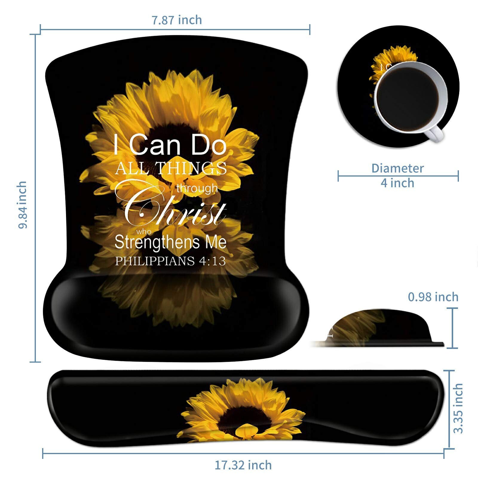Keyboard Wrist Rest and Mouse Wrist Rest Pad Set, Made of Memory Foam with Non Slip Rubber Base Ergonomic Gel Wrist Rest for Computer Keyboard Gaming Office Working, with Bible Sunflower Coaster ✓ Free 60 Day Returns ✓ Free Express Shipping Description: Features: Wrist Mouse Pad Size: 9.84in x 7.87 inch, Keyboard pad size: 17.32 x 3.35 inch, Gel wrist rest thick: 0.98 inch, Gift samll coaster: 4 x 4,It is very suitable for office workers and gamers who use the mouse and computer keyboard for a long time. Ergonomic Design: The height of the wrist rest is the same as the hanging height of the wrist when using the keyboard and mouse, which can avoid fatigue and pain caused to the wrist during long-term use, and keep the wrist in a comfortable state. Non-slip Base: The bottom of the keyboard and mouse pad is made of non-slip natural rubber material, which can be firmly fixed on the desktop to prevent sliding during use. High Quality: The edge of the wrist rest is reinforced to prevent deformation, damage and roll-up to ensure a longer use time. The soft memory foam-filled cushion part will slowly bounce back when your hand leave it, not easy to out of shape. Keyboard and Mouse Pad Materials: The surface of the mouse pad is made of smooth and breathable Lycra silky cloth to ensure maximum softness and comfort during use. We use advanced printing technology for patterns, which are colorful, easy to clean and not fade. Product Details: Brand: BVDIKMI Color: Bible Sunflower Special Feature: Ergonomic Recommended Uses For Product: Office, Gaming Material: Lycra silky cloth, natural rubber Manufacturer: Sindgan Brand: BVDIKMI Item Weight: 13.4 ounces Product Dimensions: 9.84 x 7.87 x 0.04 inches Item model number: AK-HW3-A03 Color: Bible Sunflower Cover Material: Lycra Shape: rectangular prism Material Type: Lycra silky cloth, natural rubber Size: JZ2742 Manufacturer Part Number: AK-HW3-A03 Date First Available: December 2, 2020