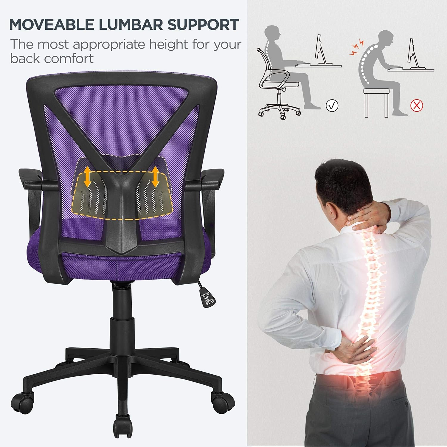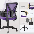 This chair is a game-changer for long work hours—super comfy with great lumbar support! The breathable mesh keeps me cool, and the adjustable height is perfect. Love the smooth swivel and sturdy wheels. The stylish purple color adds a nice pop to my workspace. Highly recommend for anyone needing a supportive, ergonomic chair!