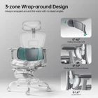About this item Safety Certification:Ergonomic chair has undergone professional testing by SGS and is deemed highly safe. The gas lift is explosion-proof and leak-proof, capable of supporting up to 400 pounds of weight. Lumbar Support: Ergonomic office chair features a three-zone dynamic lumbar support system that ensures a snug fit around the lower back. The left and right wings can rotate inward and outward up to 40 degrees, and the height can be adjusted by 1.6 degrees, with a 14-degree dynamic support feature Backrest Adjustment: Office chair backrest can be adjusted in five different positions to accommodate individuals of varying heights. Simply pull it up to the highest position and press it down to return to the lowest setting. Tilt Function: Computer chair features three different tilt angles 90°, 110°, and 135° to accommodate various sitting positions. With the added feature of a retractable footrest, you can easily switch between work and relaxation modes. Adjustable Headrest: The four-dimensional dual-axis headrest is designed to fully support the spine and can be adjusted to fit the neck comfortably with its lifting and rotating features. This ergonomic design ensures maximum comfort. Mesh Material: Ergonomic chair is made with a breathable mesh fabric that features a honeycomb pattern, providing excellent support and elasticity.