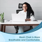 Product Description Sit Comfortably This office chair is designed with a cushioned seat with a mesh cover. As such, it can help distribute your weight evenly to alleviate the pressure on your hips and tailbone while you sit down for work. The soft padded seat can help absorb force so you won’t get too sore with prolonged sitting. It’s perfect for desk office workers, writers, students, and college students. 3-Way Arm Support On each side of this computer desk chair is a 3D armrest. It is height adjustable to let you find the setting that fits the height of your work station, just enough to support your arms and elbows. You can also move the armrest forward or backward so you can find the setting that works best with your existing equipment. The armrests can be rotated about its axis for an added customization option. Optimum Mobility This adjustable chair has wheels which can help you move around with ease. This is particularly helpful when you're working with groups as the chair can help you glide from one member to the next. The whole assembly sits on a sturdy chrome-plated steel base. Thus, this office chair may be able to withstand rough treatments and last for a long time.