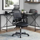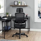 Ergonomic Office Chair with Adjustable Headrest, Black Fabric, Gaming Chair Ergonomic Office Chair is the perfect chair to get you through your workday. The chair back features a breathable mesh fabric and a lower lumbar support panel. The nylon panel contours to your lower back providing a nice lower lumbar support and helping improve posture. The adjustable headrest is included for added neck and head support. The customizable height adjustment allows you to position the headrest to fit your needs and help relieve any shoulder or back tension. Nylon armrests are ergonomically positioned for additional arm support while you type or work. The seat is generously padded with high-density foam that contours your body and creates a luxurious seating surface. Underneath the chair, you will find the pneumatic gas-lift seat-height control and tension/tilt knob that help with customizing the chair to fit your needs. The durable nylon base is scuff-proof and sits atop five dual caster wheels that allow you to move effortlessly around the room. The sleek black fabric and simple, classic look of this chair make it a great fit in any workspace. Whether you work from home, have a studio for working on your craft, or go into a commercial office space, the Mainstays Ergonomic Task Chair with Adjustable Headrest will fit nicely with any room decor and enhance the look of your workspace. Specification : Back Type: High Back Material: Fabric Seat/Mesh Back Color: Black Arms: Fixed Base Material: Nylon Style: Swivel Chair Type: Office Furniture Feature: Height adjustable headrest provides additional support to your neck to help relieve tension in your shoulders while you work Fabric upholstery with a breathable mesh back Pronounced lumbar support Ergonomically positioned armrests Pneumatic gas-lift with a lockout feature Tension/tilt controls for customized comfort Dual caster wheels for easy mobility around the room Adjustable Height: 44" to 48.75" Product Weight: 21 lbs. Weight Capacity: 275 lbs. Product Dimensions: 25.25in W x 24.25in D x 44-48.75in H (64.1cm x 61.6cm x 111.7 - 123.8cm) Assembly Details: Minimal Assembly Required Customer Feedbacks Your important positive feedback is highly respected. It will inspire us to make the best products more and we will guarantee good quality service in future as well. If you didn't receive your item within the time period, or If you want to know about this item . do not delay to contact us. Have a Nice Day !!!! Thank You Very Much for Visiting My Store