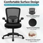 Ergonomic Design--Relax Yourself: reliable ergonomic office chair provides 5 supporting points(head/shoulder/back/ hips/ hands) and proper lumbar support, allowing you to maintain the correct sitting posture for a more comfortable experience, releasing pressure and relieving shoulder and neck pain from long hours of work Flexible Adjustable Functions: Our home desk chairs can flexibly adjust different heights and tilt angles. Adjustable lumbar support adapts to the sitting posture of varying body shapes, effectively supporting your back and spine so that you will not feel tired quickly Breathable Mesh Fabric: The mesh office chair allows the free flow of air, keeping you cool and comfortable at all times; Collapse-resistant, high-density foam soft cushion for comfort and breathability, it won't make you sweat after a long working day Reliable Chair: The comfortable office chair uses silent PU casters to protect the floor effectively. The sturdy three-stage air rod and thickened explosion-proof base plate not only have a strong bearing capacity, and holds up to 300 lbs, but also improve the safety and stability of use and the service life of the chair Worry-free Aftersales: The mesh office chair can be assembled in about 15 mins using the included tools by referring to the installation manual or video. 1-year warranty! Any problem can be solved by contacting our after-sales service