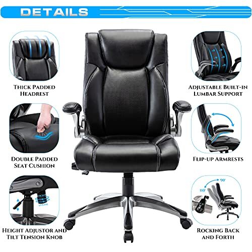This chair is a game-changer for long workdays! The adjustable lumbar support keeps my back comfortable, and the flip-up arms are perfect when I need extra space. It rolls smoothly, looks sleek, and the padding stays supportive even after hours of use. Fast shipping and a trustworthy return policy made buying stress-free—highly recommend this ergonomic upgrade!