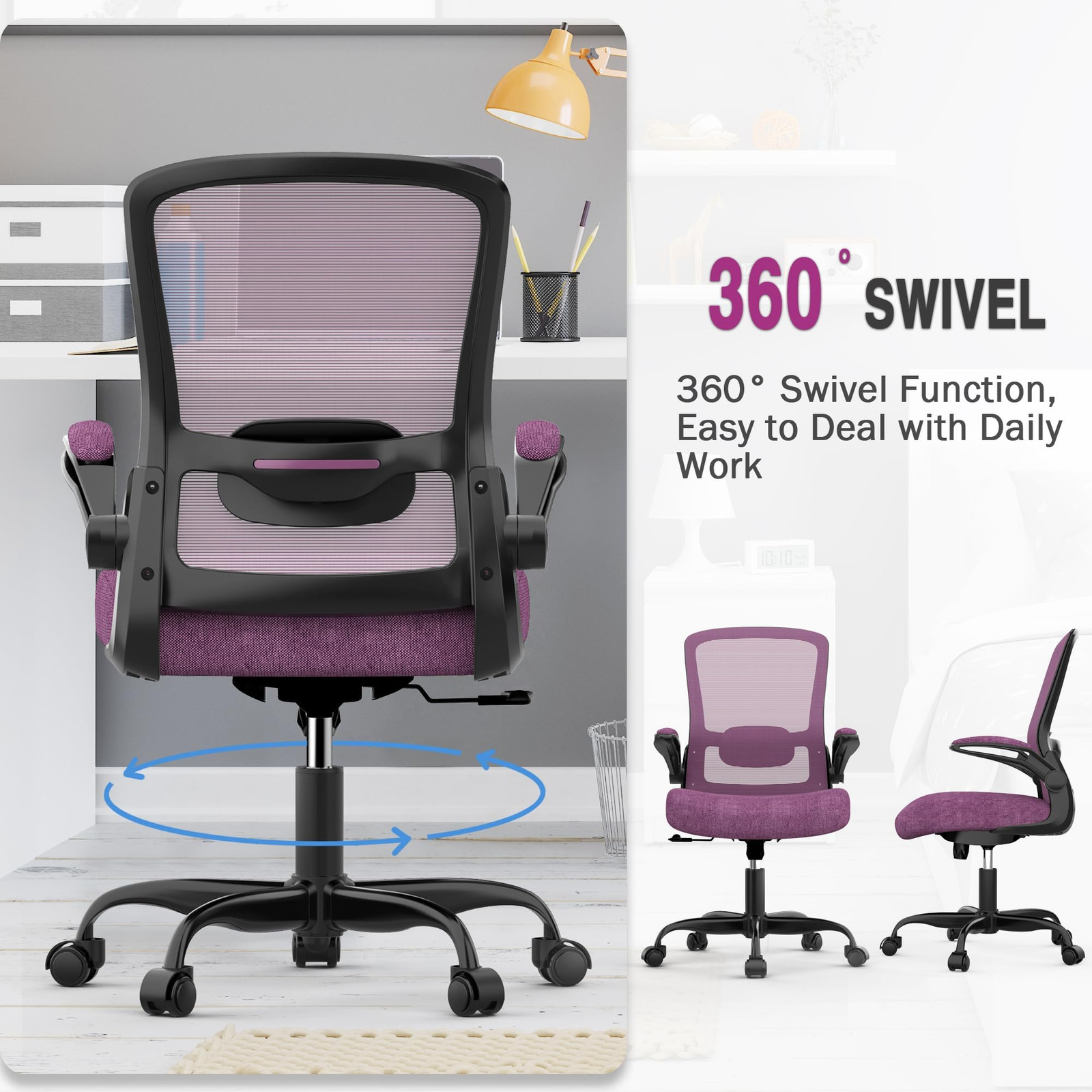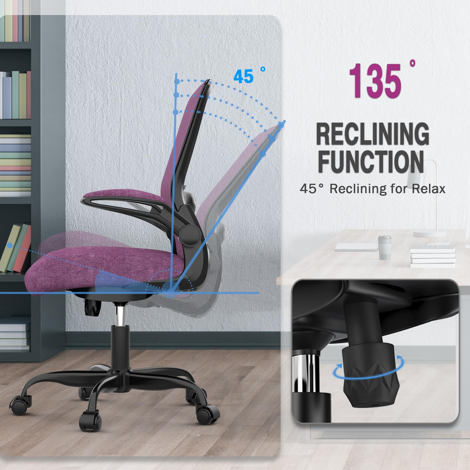 【ERGONOMIC DESIGN OFFICE CHAIR--Improve Your Posture】The design of the backrest fits the shape of the human spine, with the adjustable lumbar support, the office chair will give your back strong support. And the thick seat also can relieve the hip pressure to offer you comfort. Thick padded back & seat take this chair to the next level of comfort. Choose this office chair, choose comfort. 【ADJUSTABLE DESK CHAIR--More Comfort】This task chair has a 4 inch lifting range to meet the needs of people of different heights, it also has a reclining function of 90-135 °which allows you to relax yourselves after work. This mesh computer chair with flip-up armrest and seat height adjustable means you can find the perfect position to ensure you a pain-free day for long hour sitting. 【HIGH QUALITY MATERIAL--Work is Easier】Certified by BIFMA and SGS. Office Chairs have Soft High-density form Seat, which is covered with durable breathable mesh fabric and has good elasticity and difficult to deform to keep comfort for longer hours. Height-adjustable GAS LIFT CHROMED, Heavy-duty base and nylon smooth-rolling casters for great stability and mobility to help promote a comfortable seated position, keeping you comfy after long hours of game or work at home. 【SPACE SAVING】The simple style of the mesh office chair adapts ideally to any office furniture, especially in living rooms, bedroom, kitchen, study and office, and can be used in a variety of ways, you can flip the arms up and put it under the desk for saving space. 【WORRY FREE & Perfect Gift Idea】360 degree swivel, made of heavy-duty noiseless casters, its explosion-proof base plate with 5-star base increase safety and stability. Maximum capacity up to 300LB. We Guarantee our customers 100% satisfaction with our premium desk chair! If you’re not satisfied with this executive chair, just email us and get a solution WITH NO EXCUSE!